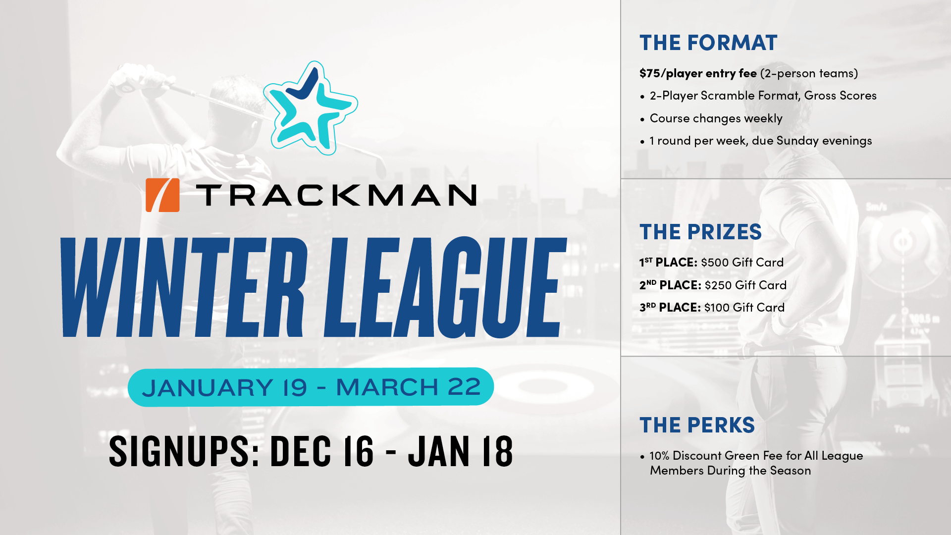 Jan 19 - Mar 22, 2026Join our Winter Golf League and compete in a 2-player scramble format with new courses each week. Enjoy weekly rounds, playoffs, prizes, and 10% off bookings all season. Sign up…