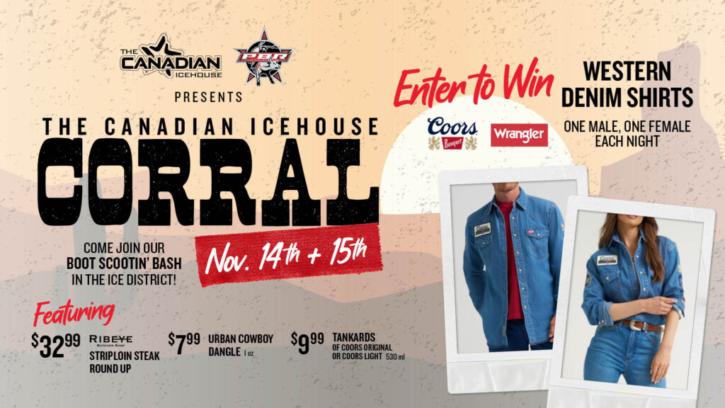 Round up your crew and join us for a boot-scootin’ good time — the rodeo spirit is alive and well at The Canadian Icehouse!